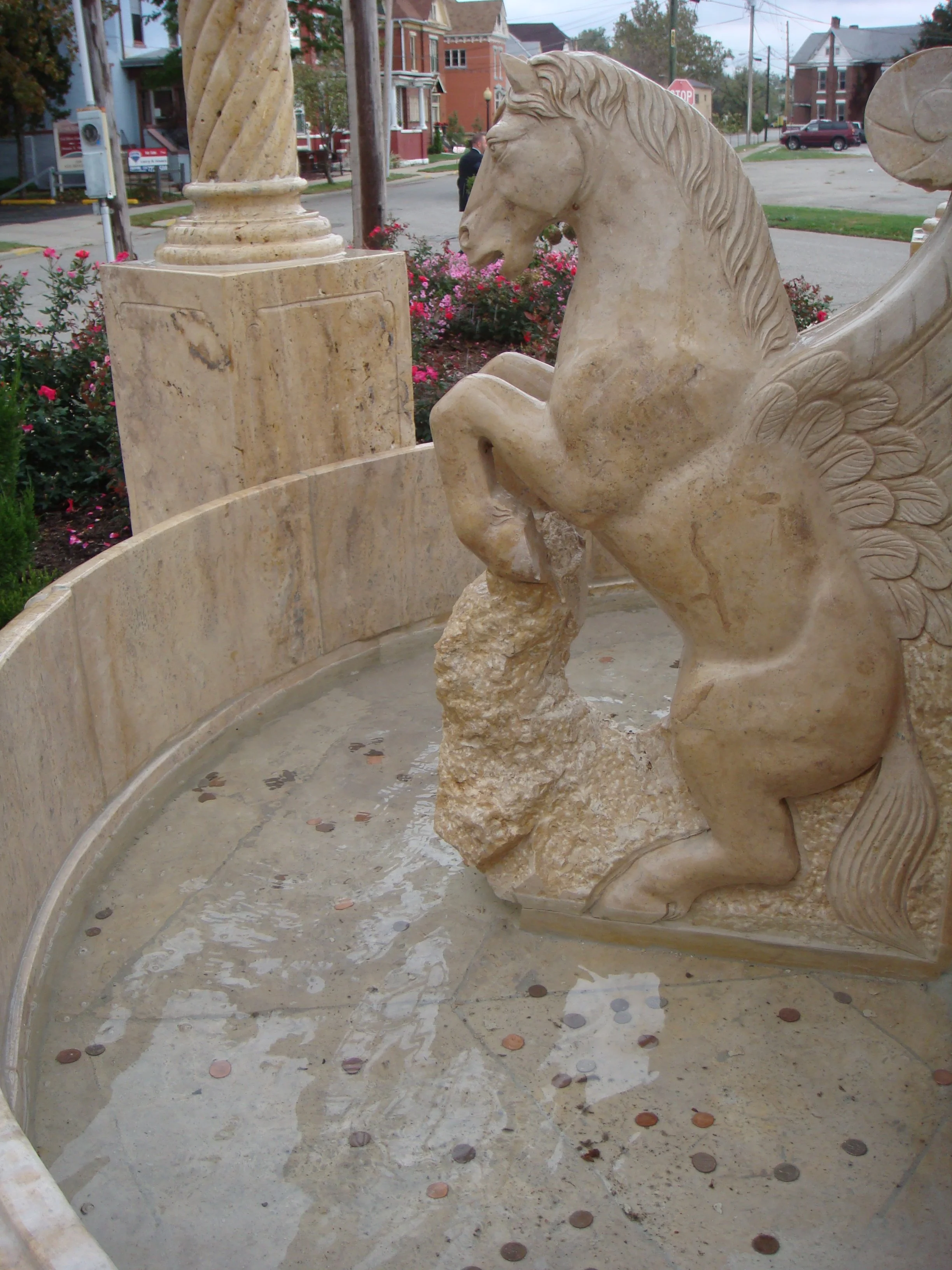 This is a small ¼ acre park that has been landscaped and named for the Cole Family. The family matriarch, Jean has been an avid supporter of this park with her own plantings over the years. Since the spring of 2007, the park has had a beautiful Italian marble fountain and professional landscaping in honor of the Cole Family’s continued support.